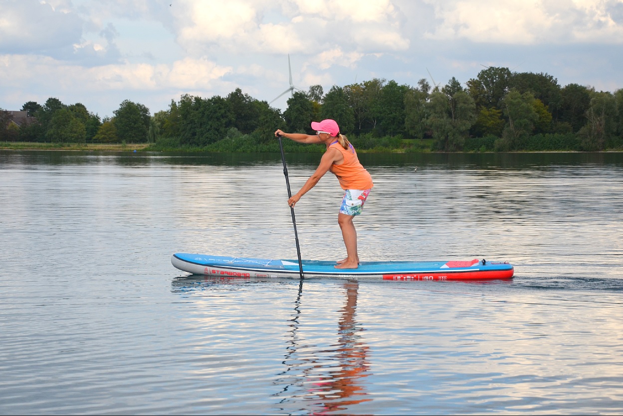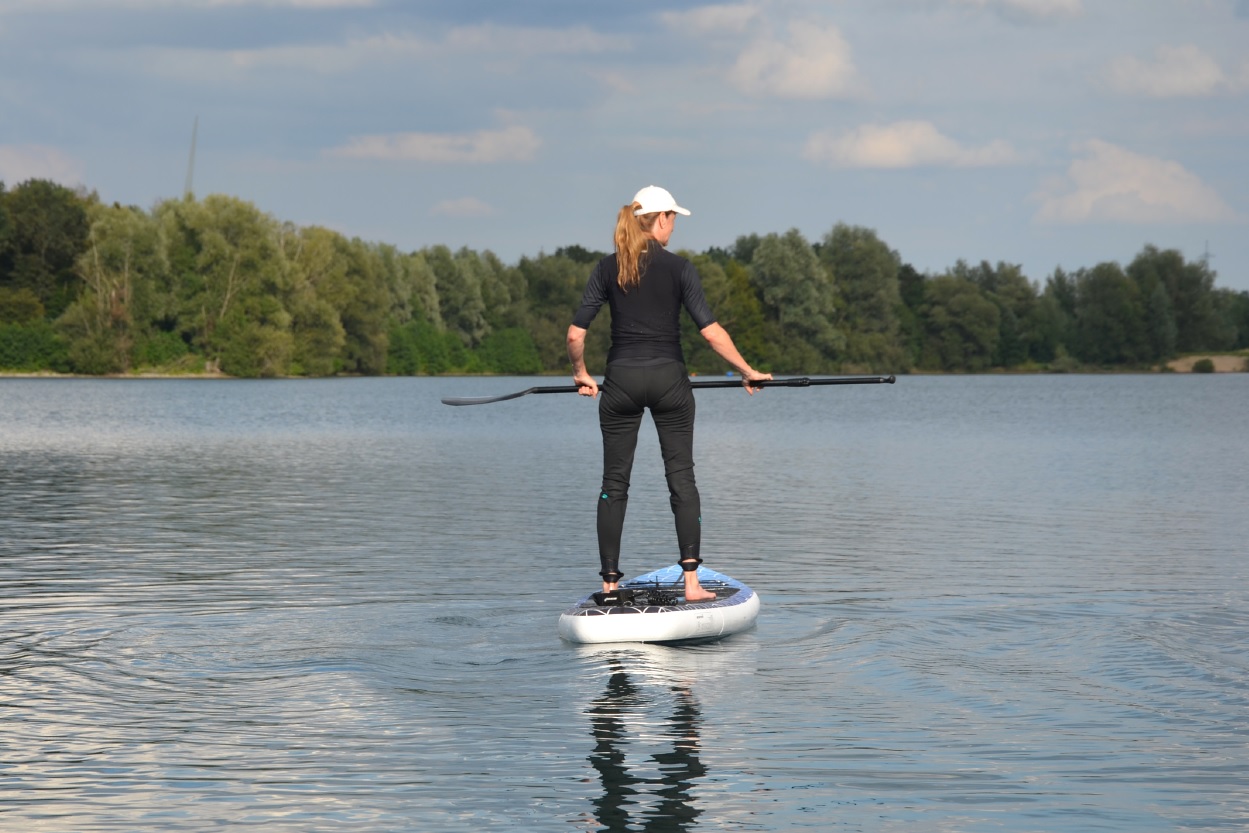 Eines vorneweg: Der SUP-Einsteigerkurs macht nicht nur für echte Neulinge auf einem Stand up Paddel Board Sinn. Auch SUPer, die schon erste Erfahrungen auf einem Brett gesammelt haben, lernen viele wichtige, neue Dinge. Oder haben Sie gewusst, wie man nach einem Sturz ins Wasser wieder sicher und leicht aufs Board aufsteigt? Oder was „Windkraft vor Muskelkraft“ auf einem Gewässer bedeutet? Am besten lässt man sich all dies von einer Expertin, wie Katharina Grafer, erklären. Sie ist eine Frau der ersten SUP-Stunden. Seit über zehn Jahren steht die wassersportbegeisterte Kempenerin schon auf Stand up Paddel Boards und ist ausgebildete SUP-Trainerin. SUP-Einsteigerkurse bietet sie unter anderem für neue Mitglieder des SSCK Kempen auf dem Königshütte-See an. Nachfolgend einige Elemente ihres Kurses exklusiv für die KK-Leser.